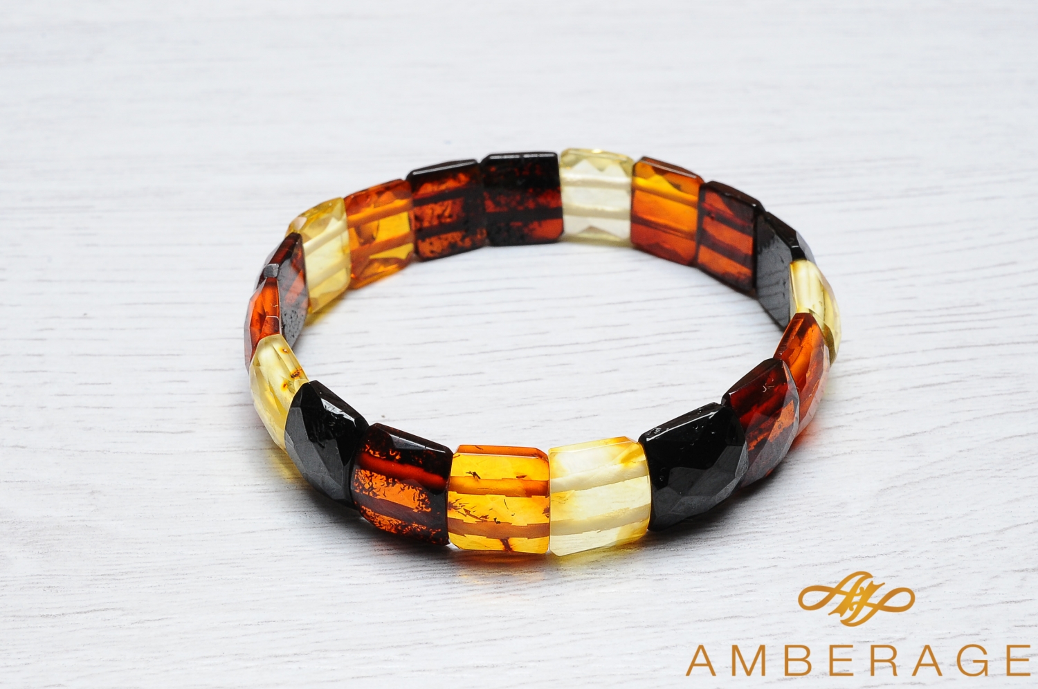 Gintarai suverti plokščiąja puse į apyrankės vidų ant dviejų lygiagrečių tvirtų gumelių, todėl apyrankė visada išlaiko tobulą formą, patogiai glunda prie rankos, ją lengva užsidėti.